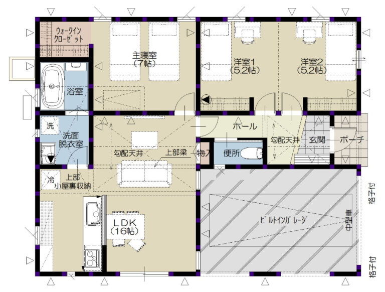 – 平屋では、各部屋の配置が重要です。家族のプライバシーを考慮しながら、各部屋の位置を決定しましょう。また、外部とのプライバシーを確保するために、窓の位置や目隠しの工夫も立地によっては取り入れる必要があります。