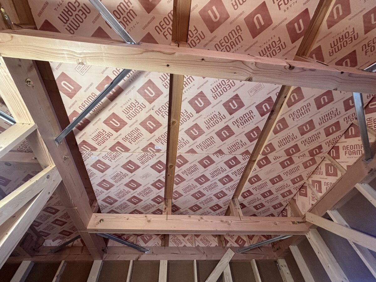 使用している断熱材は、旭化成の【ネオマフォーム】と呼ばれるフェノールフォーム断熱材となります!一般的なグラスウールと比べて断熱性能がトップ性能となっております。