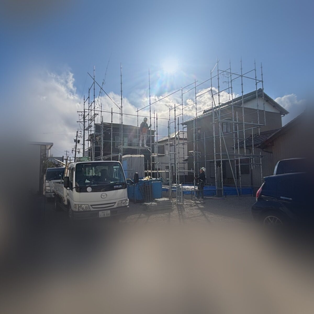 明日はいよいよ、H様邸の上棟となりました。本日は先行足場を組んで明日の上棟に備えます。