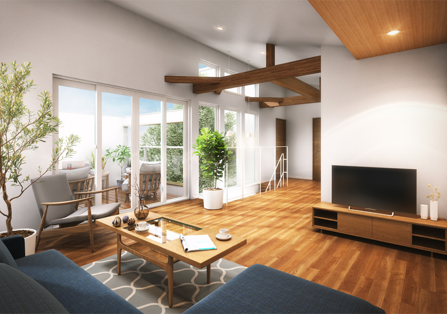 中庭やリビングとつながるルーフバルコニーは、プライベートな屋外空間として自由に、多目的に使えるのが魅力。外出しなくても気軽にアウトドア気分を味わうことができます。