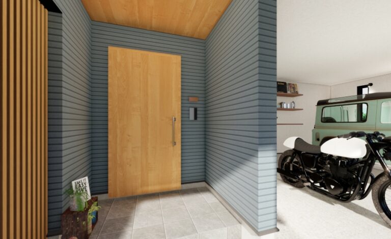 雨の中出掛けるのは億劫ですが、室内とポーチとガレージが繋がっていることにより、雨に濡れることはありません。