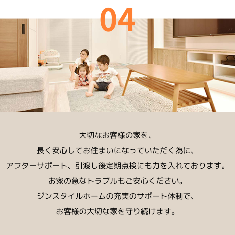 建てる前ももちろん大切ですが、住み始めた後、何十年先も快適で安心して暮らし続けていただく為に、高品質な素材を使用し、高品質な施工を施すことはもちろん、次の世代にも引き継げるように、長期的な保証やサポート体制を確立しております。